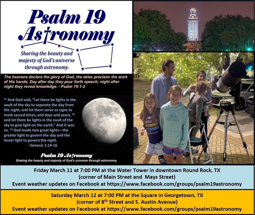 Sharing the beauty and majesty of God's universe through astronomy!