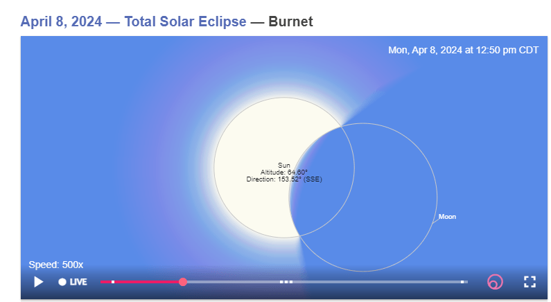 The page will also create a video showing the entirety of the eclipse in the selected town.